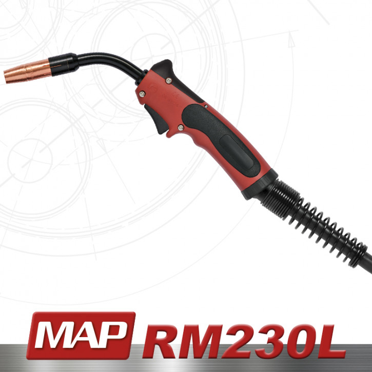Сварочная горелка MIG/MAG серии "MIG-Alpen-Power" (MAP) является мощной альтернативой традиционным "евро" горелкам. Технологические усовершенствования, такие как лучшее охлаждение, более высокая теплопроводность и электропроводность, лучшее направление проволоки и принудительный контакт сварочной проволоки, обеспечивают более высокую производительность и меньший износ. Эти преимущества позволяют сэкономить средства при повседневном использовании. Одни и те же изнашиваемые детали для резаков с воздушным и водяным охлаждением одного и того же размера упрощают поставку быстроизнашивающихся деталей. Конструированная рукоятка "RMC" надежно и удобно лежит в руке в любом положении сварки. Высокая эргономика, подушечки для захвата и шаровой шарнир поддерживают сварщика в его движениях и позволяют работать без усталости. Рукоятка RMC предлагает опцию модуля дистанционного управления "вверх/вниз". С помощью этой опции параметры на ручке могут быть изменены во время сварки. Благодаря этим характеристикам серия MAP устанавливает новые стандарты для ручных сварочных горелок MIG/MAG. MAP горелки образуют оптимальный вариант для продуктивной работы при отличном соотношении цена/производительность.