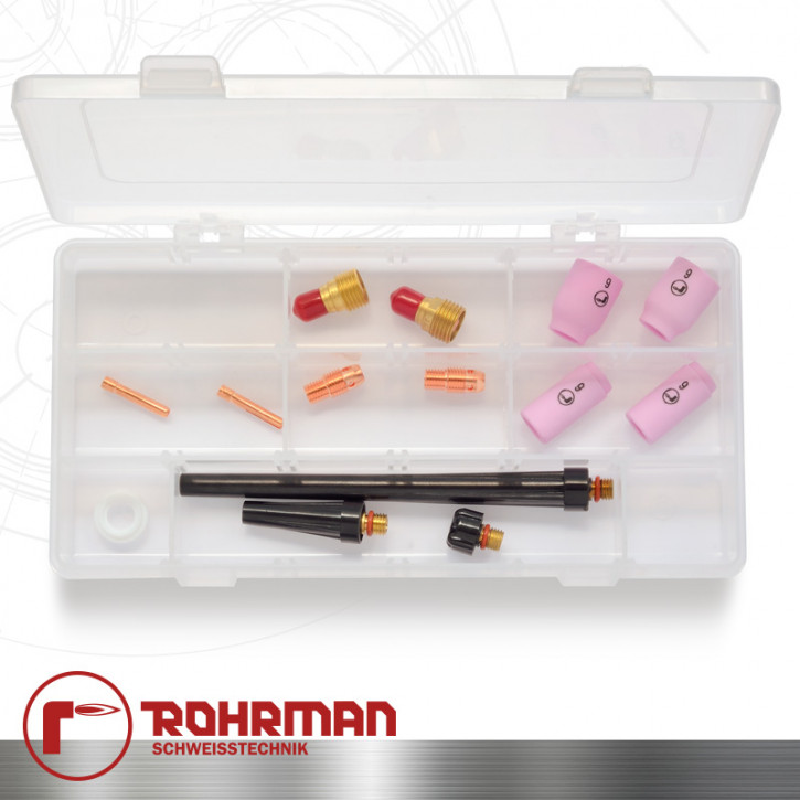 Сварочные горелки TIG должны быть оснащены к сварке специальным оборудованием . ROHRMAN предлагает широкий ассортимент оборудования, подходящего для решения самых разнообразных сварочных задач. Ассортимент включает в себя переходные втулки, корпуса переходных втулок, газовые линзы, газовые сопла, изоляторы и колпачки резаков различных размеров, длины и диаметров. Специальные решения оборудования позволяют, например, уменьшить габариты, повысить газовую защиту и улучшить транспортную доступность.